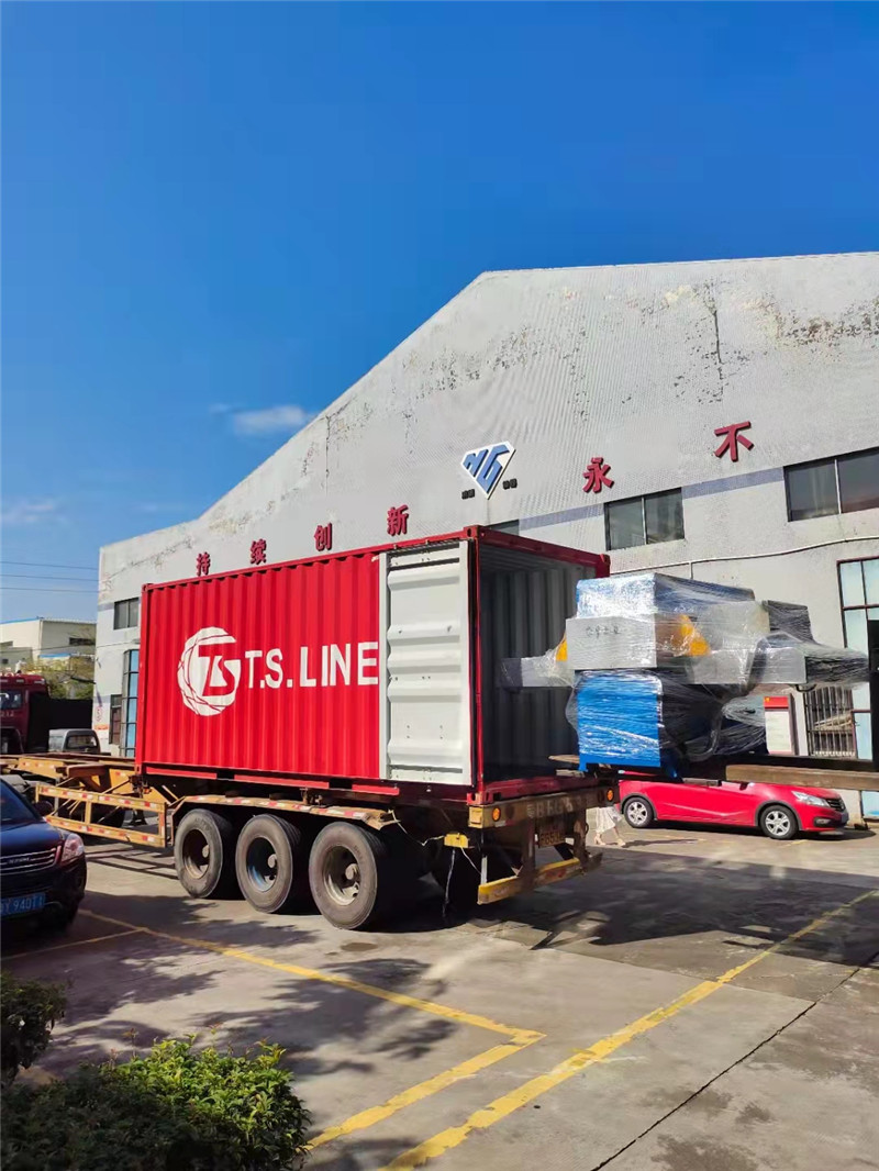 鴻鋼裁斷機(jī)出口裝柜現(xiàn)場